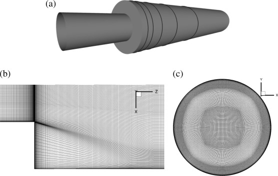 The mesh generated in a high-fidelity combustor in the form of sudden expansion.